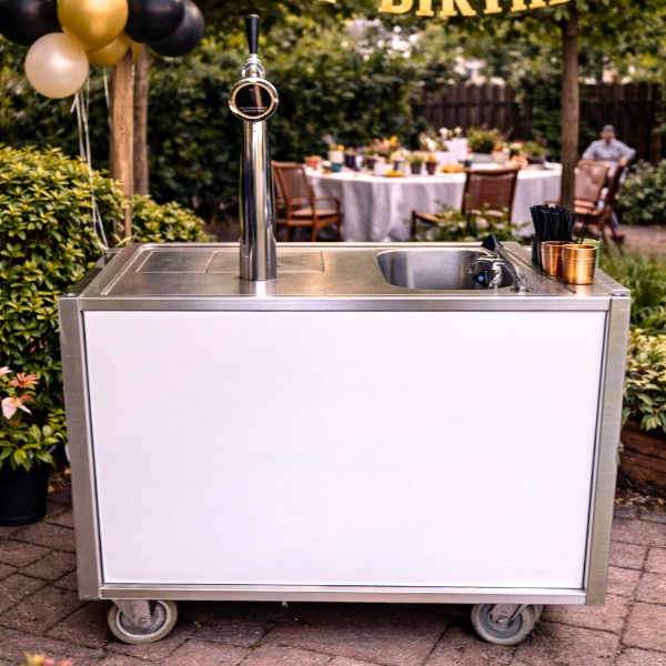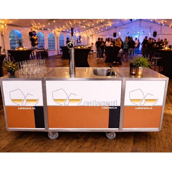 Flexibiliteit: De standaard 1 meter bar kan snel en eenvoudig worden uitgeklapt naar 2 meter, ideaal voor situaties waarin je meer ruimte nodig hebt zonder in te boeten op functionaliteit. De 2 meter bars bieden directe ruimte voor grote hoeveelheden dranken, perfect voor evenementen met veel gasten.