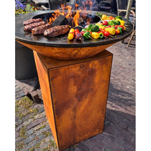 Een OFYR is een veelzijdige en stijlvolle buitenkookunit die steeds meer aan populariteit wint, vooral bij evenementen, in restaurants en privétuinen. Het is ontworpen als een combinatie van een vuurkorf, barbecue en plancha, met een focus op gezelligheid, interactie en culinaire creativiteit.